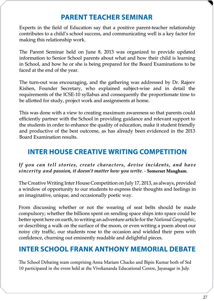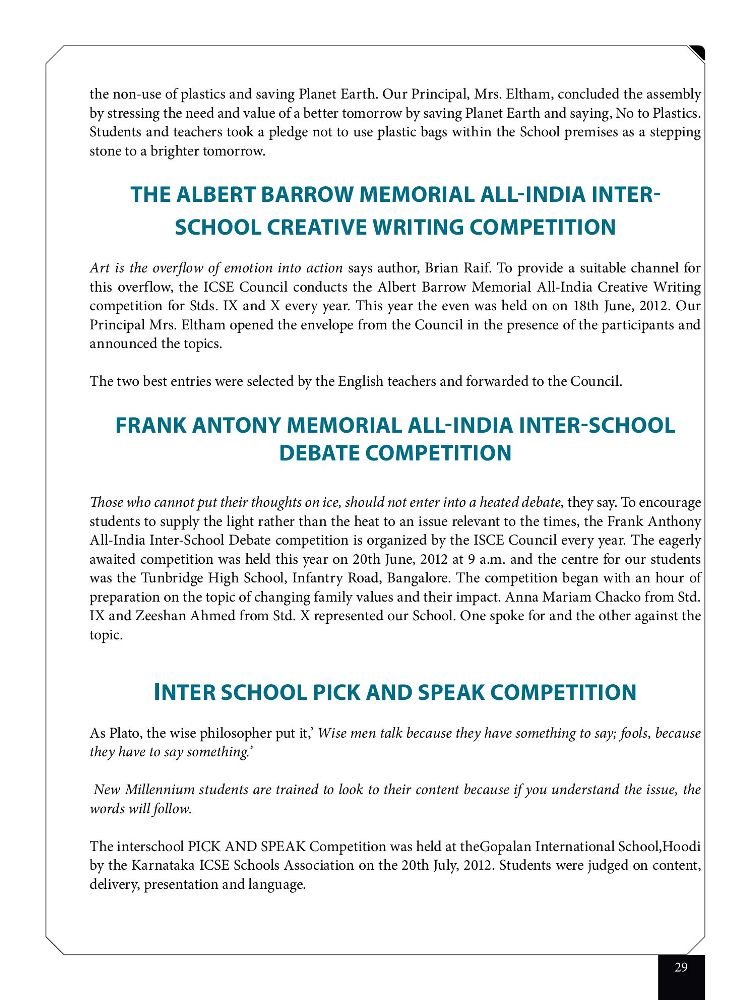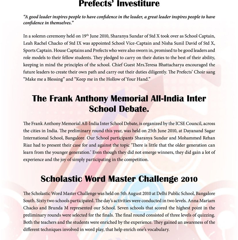The Frank Anthony Memorial All-India Inter School Debate.