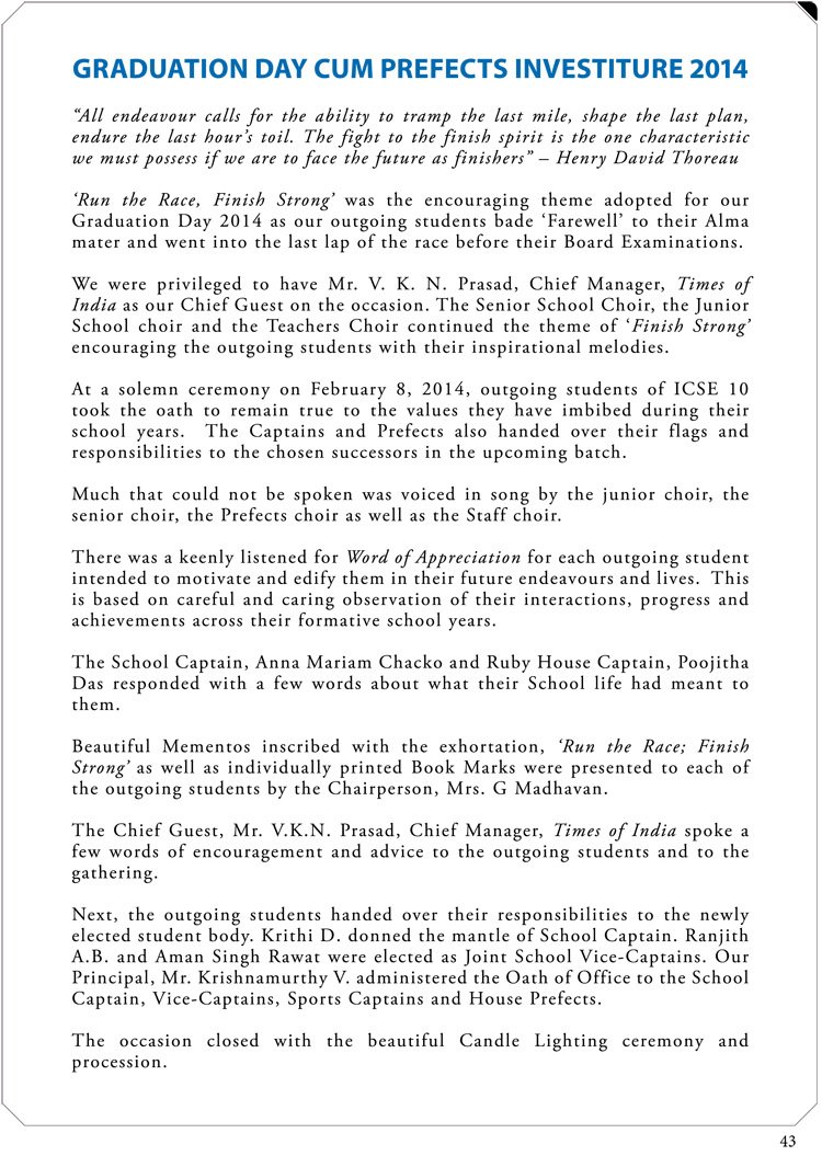 and for the inspiring talk addressed to our prefects. At the end