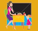 teachers to discuss the progress of the students. With both hands